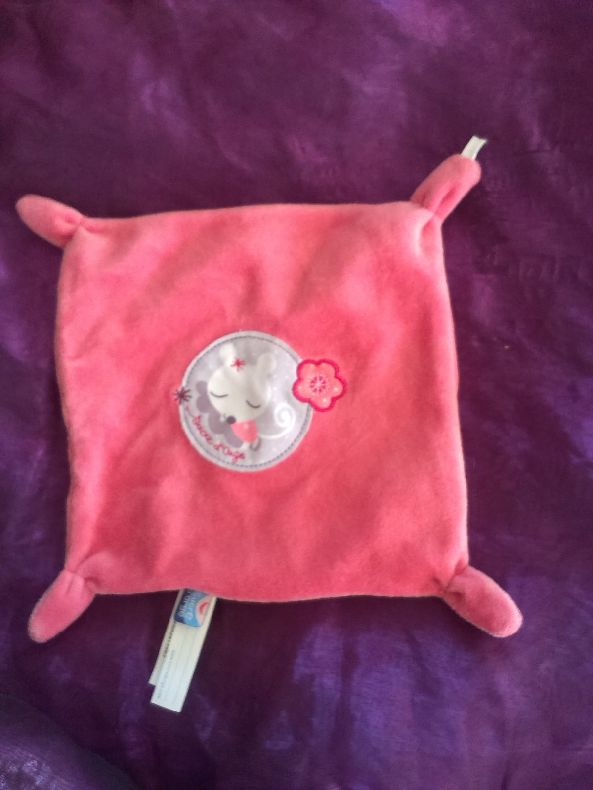 peluche doudou plat carré sucre d'orge rose souris fleur rond gris
