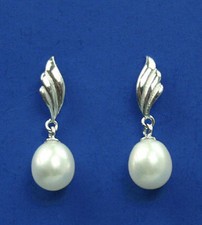 Boucles d'oreilles pendantes perles d'eau douce/argent sterling EAR040008