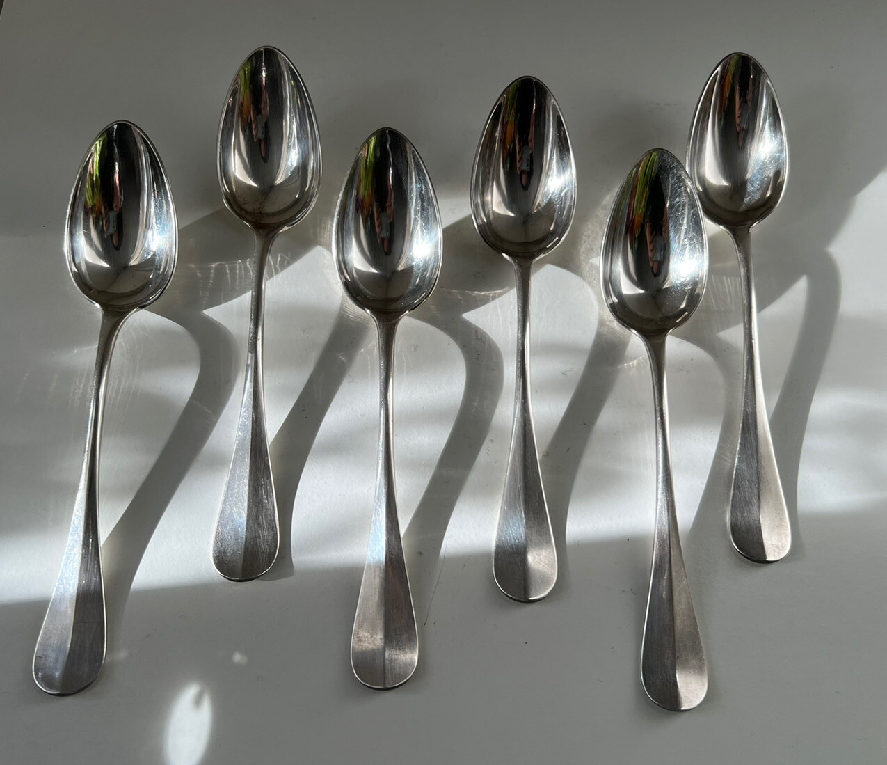 Argenté de la maison Christofle modèle Uniplat. Bel ensemble de 6 cuillères à soupe en métal.