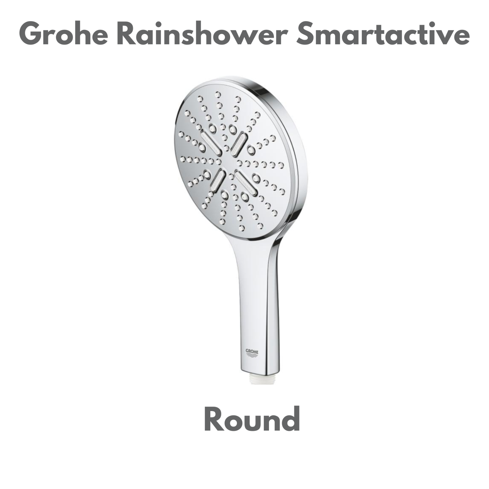 Douche à main Grohe Rainshower SmartActive. sélectionner les modes de pulvérisation d'une seule touche du doigt à l'arrière de la douche (GROHE SmartTip). surface chromée durable, facile à nettoyer (GROHE StarLight®).