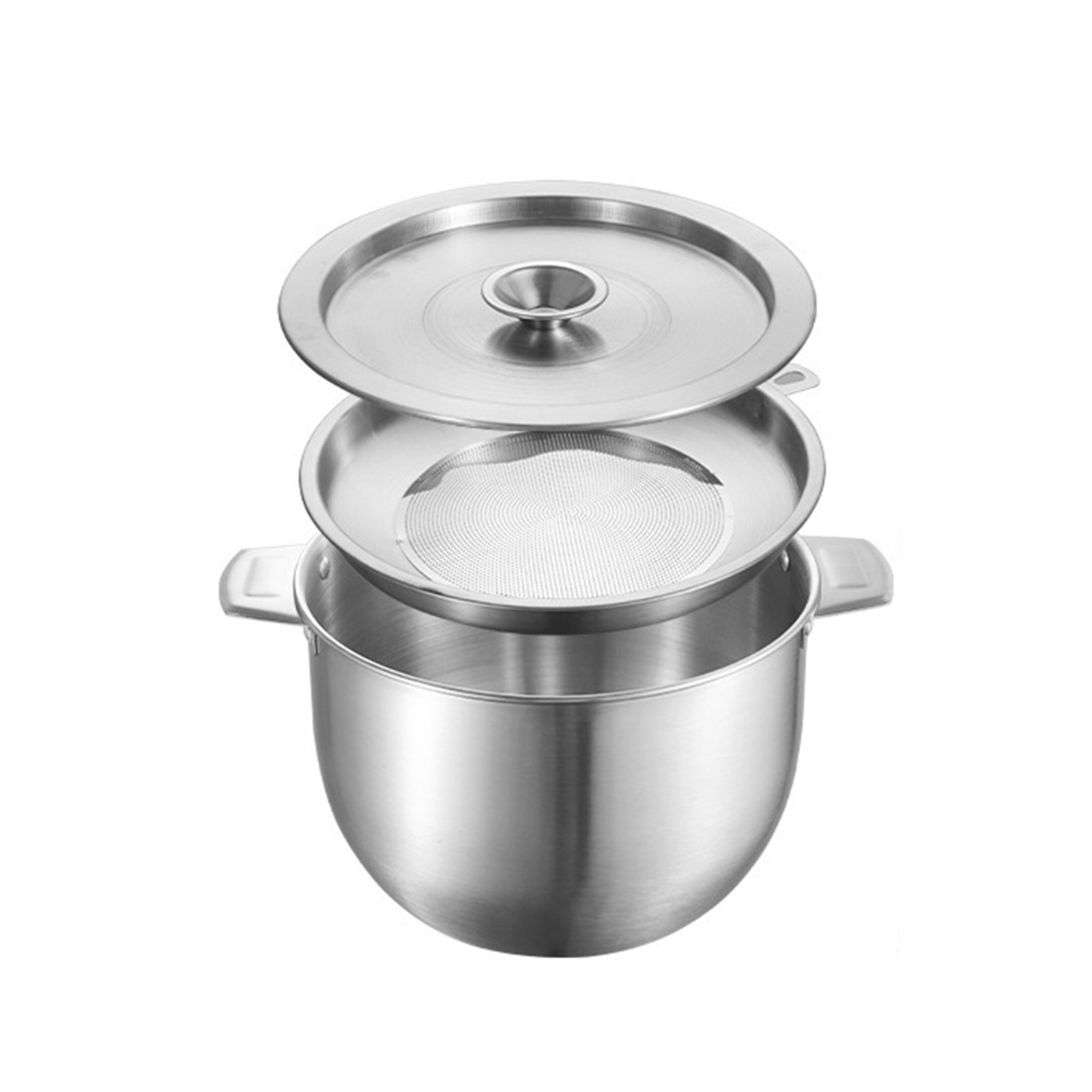 Nom de la pièce : pot filtre à huile de soupe en acier inoxydable avec couvercle. Matériau : pot filtrant à huile de soupe avec couvercle. 1 Pot filtre à huile de soupe avec couvercle. Le fond stable et antidérapant empêche le bol de glisser ou de trembler pendant le mélange et l'agitation.