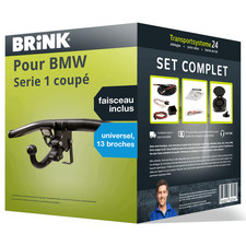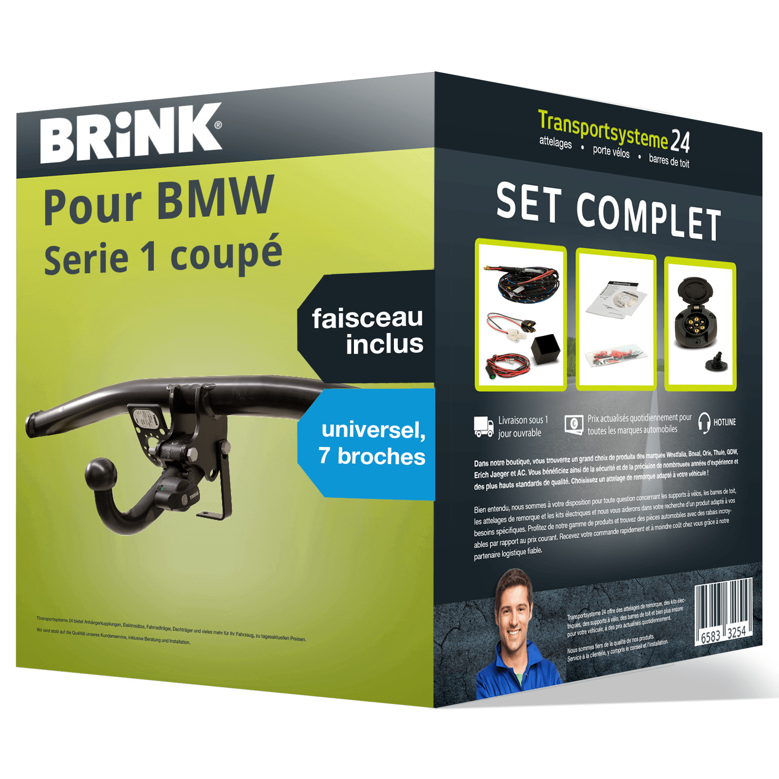 PACK COMPLET pour BMW Serie 1 coupé 10.2007 - à ce jour, composé d'un attelage rotule démontable Brink et d'un faisceau 7 broches universel TowTec. D’autres informations produit importantes consultables dans la notice de montage - veuillez cliquer sur le lien!.