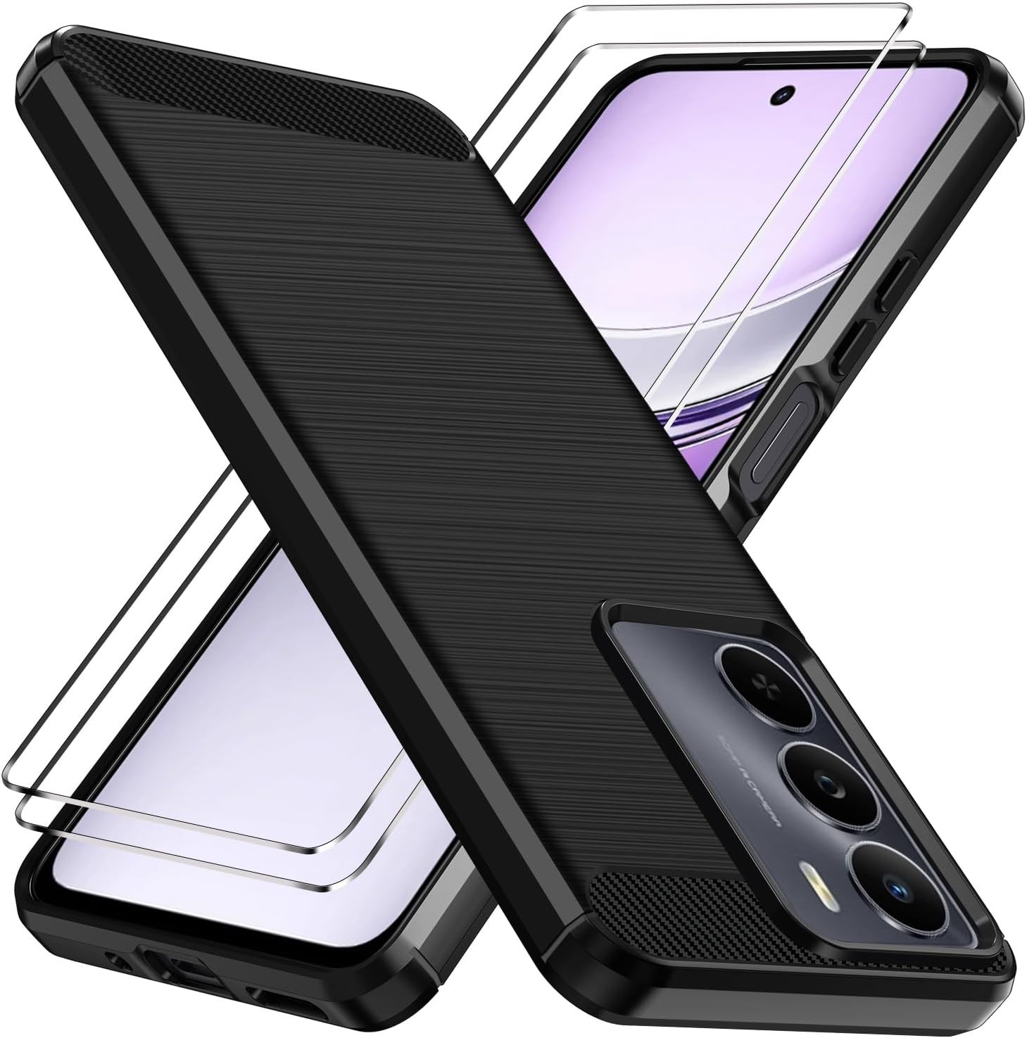 Coque Etui Housse Carbone + Vitre Verre Trempé pour Realme 14T / 14X / 14 5G