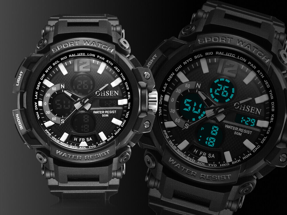 Montre-bracelet de sport homme à quartz numérique OHSEN bracelet en...