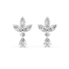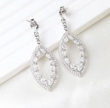 Boucles d'oreilles pendantes femme marquise diamant 10p créées OR sur certifi...