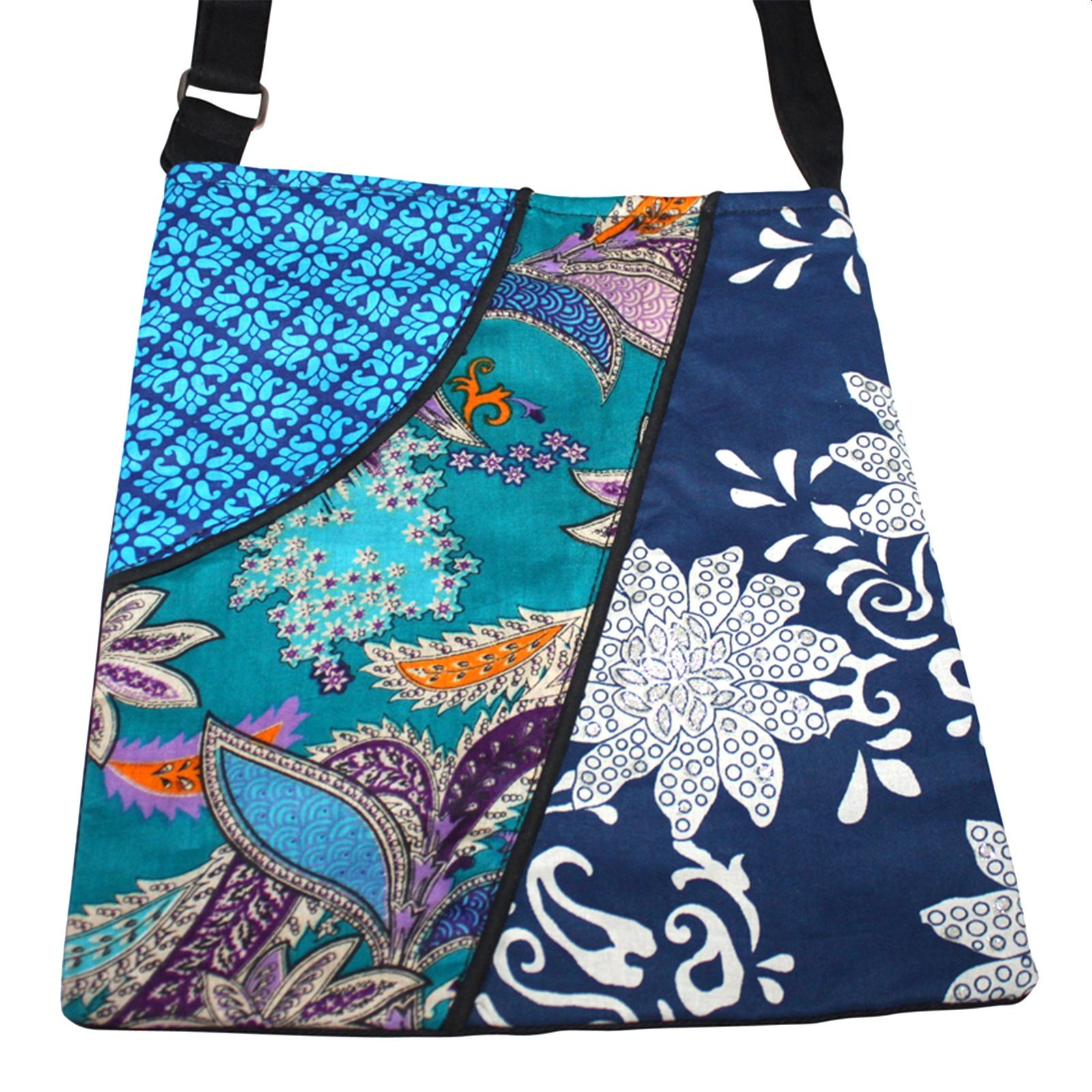 Sac en tissu à 3 motifs - bleu clair-turquoise-bleu foncé - sac à bandoulière