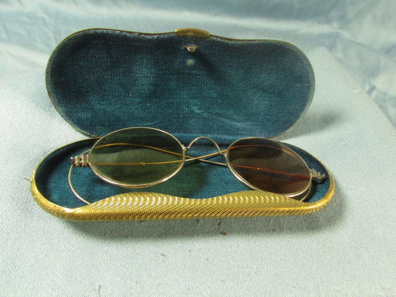 Lunettes de soleil anciennes dans un bel étui en métal doré