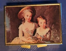 Jolie boîte à pilules en métal travaillé et portrait féminin superbe. Matière à définir (faïence ?). Envoi en lettre suivie.