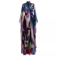 Robe longue fuchsia rose violet de soirée, fête, mariage, gala, chic perles doré