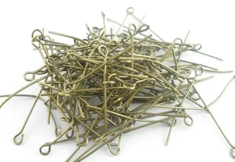 50 Aiguilles Clous Tige à Œil en Alliage Bronze Antique 50x0.7 mm