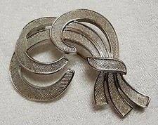 Signé: LISNER. bijou en bel état. métal doré texturé, orné de perles en verre blanc.