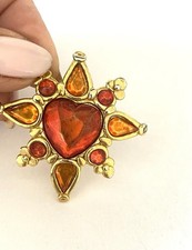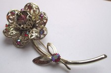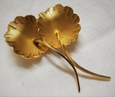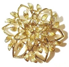 BIJOU VINTAGE BROCHE FLEUR SIGNÉ LISNER MÉTAL DORÉ TEXTURÉ PERLE EN VERRE # A9