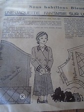 ANCIEN PATRON POUR LA POUPEE " BLEUETTE " VAREUSE POUR LA PLAGE AOUT 1936