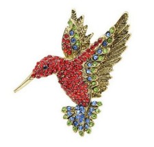 Broche bijou Oiseau Colibri strass cristal multicolore en acier.
