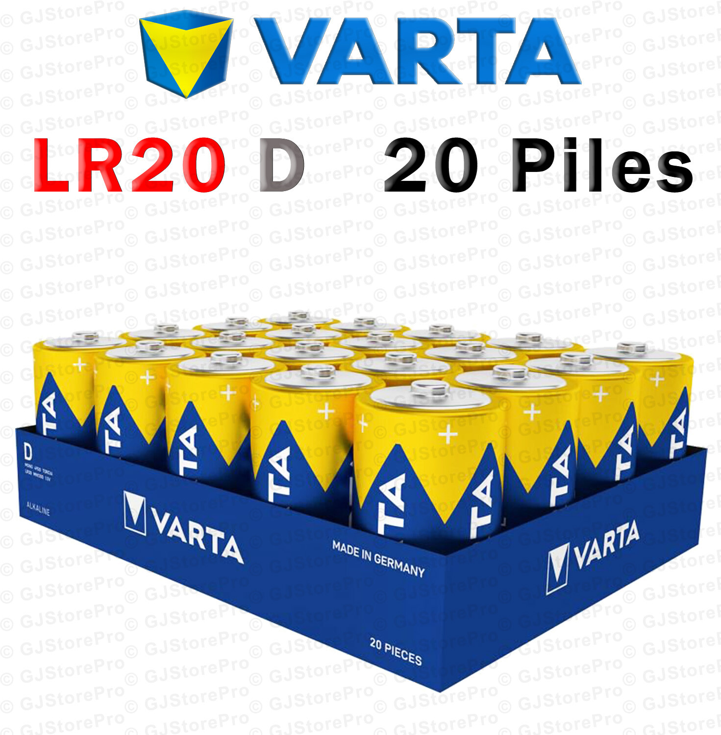 20 Piles LR03 AAA - LR6 AA - 6LR61 - LR14 C - LR20 D - VARTA Pïle Industrial Pro