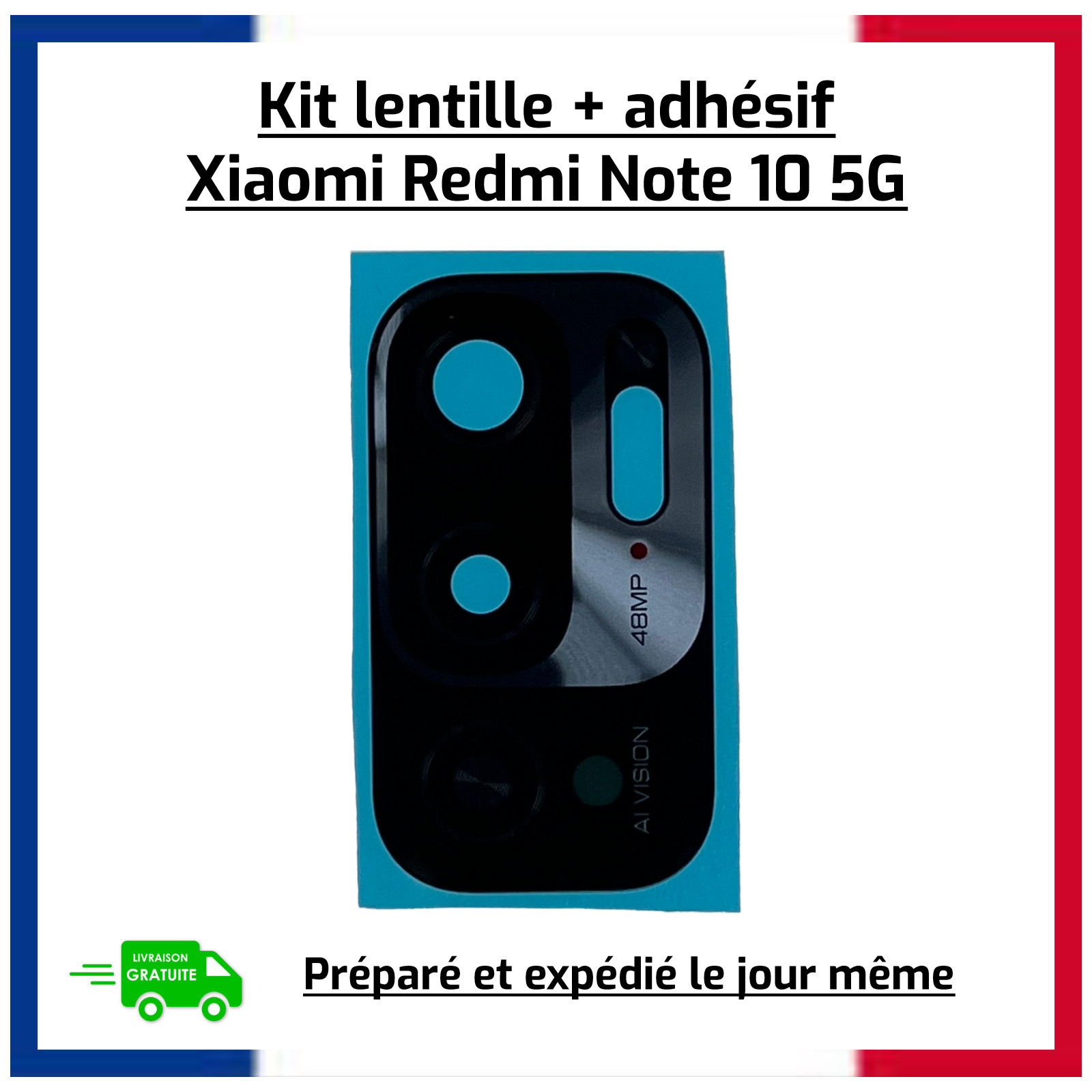 Vitre lentille caméra arrière pour Redmi Note 10 4G / 10 5G / 10 Pro / 10S