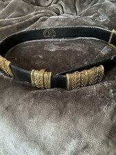 Ceinture vintage en croute de cuir de vachette & laiton patiné Jacqueline Riu