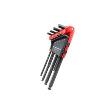 Comprend 9 clés coudées six pans Côté long avec rotule et aimant de maintien. 5/16" - longueur côté court : 44 mm - longueur côté long : 206 mm. 1/4" - longueur côté court : 38 mm - longueur côté long : 186 mm.