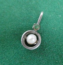 Pendentif ancien bijou en argent sterling 925 pierre précieuse coquille d'orm...