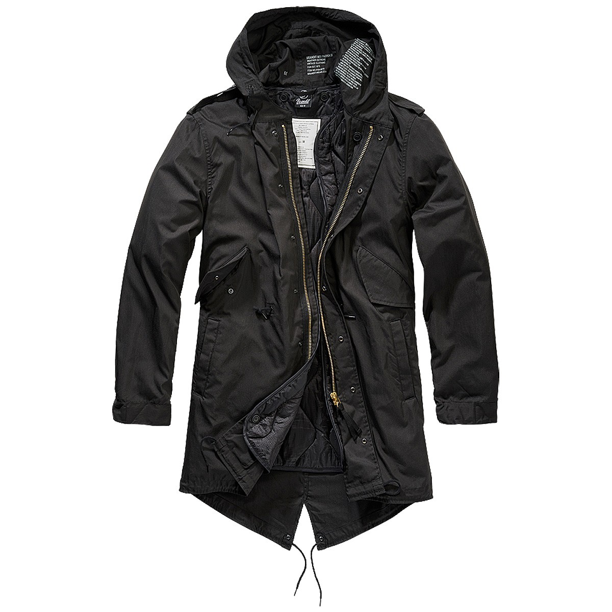 La parka à capuche M51 est une parka longue classique de style queue de poisson. Cela signifie qu'il a un dos en deux parties, ce qu'on appelle la « queue de poisson ». queue de poisson), qui peut être repliée vers l'intérieur et fixée à la parka grâce à des boutons-pression. La division en deux parties offre plus de liberté de mouvement si vous souhaitez par exemple faire du vélo ou du scooter avec la parka. Contrairement à la parka M51 classique, conçue pour transporter tout l'équipement de combat en dessous, le modèle de Brandit a des tailles civiles normales et une coupe régulière. Grâce à la doublure thermique amovible et à la grande capuche avec cordon de serrage, la parka est parfaite aussi bien pour les journées froides que pour la mi-saison. La parka est dotée d'une fermeture écla.