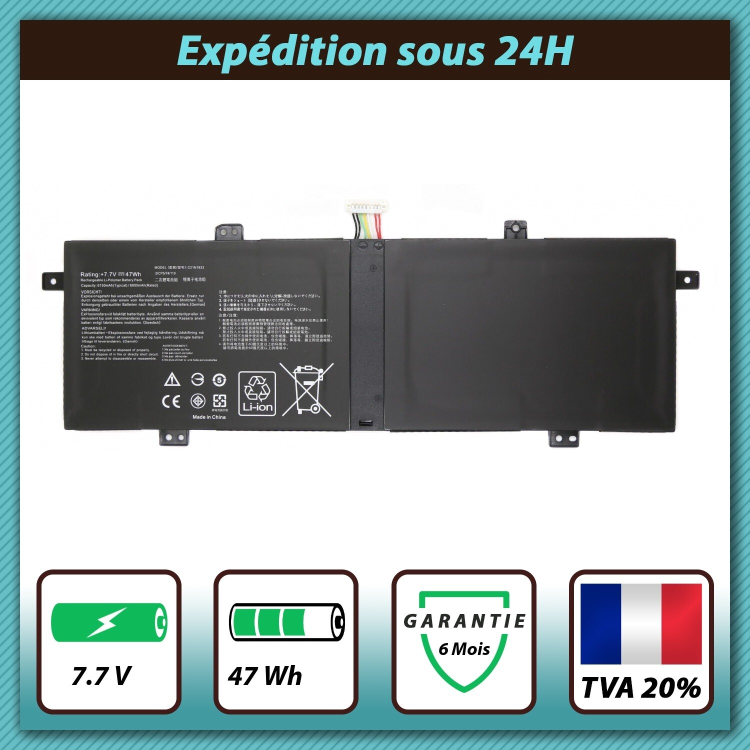 BATTERIE COMPATIBLE ASUS VIVOBOOK S14 S431 / S431F - C21N1833 7.7V 47Wh