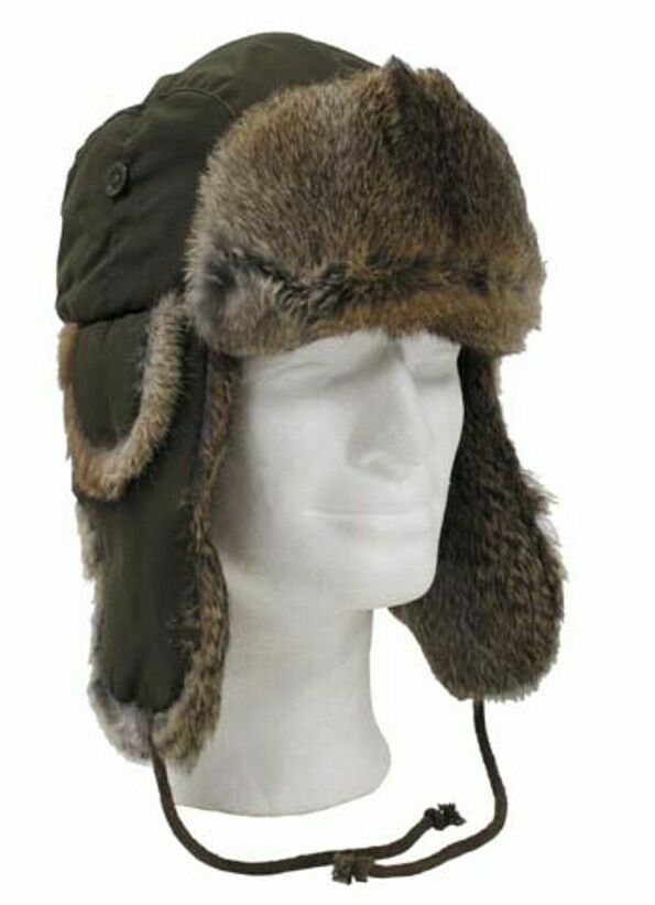 Chapeau de fourrure avec fourrure de lapin Ce chapeau en fourrure tendance dans le style d'un chapeau de pilote en fourrure avec oreillettes est l'accessoire tendance et fonctionnel pour l'hiver. Les oreillettes peuvent être soit repliées et nouées sous le menton, soit simplement repliées et nouées avec les sangles à l'arrière. A l'avant, le « bouclier » peut être rabattu vers le haut ou vers le bas à l'aide d'un bouton-pression. Le bonnet est fait de véritable fourrure de lapin extrêmement chaude et est douillet et très agréable à porter. Il y a une doublure matelassée à l'intérieur. En raison des différentes structures de fourrure, chaque chapeau est unique. Couleur : Olive avec fourrure marron ou noir avec fourrure grise Noten aussi les autres commandements pour ouigd, outdoor, camping,.