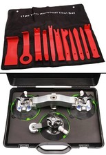 1 x couteau à tirer avec lame et poignée de traction en corde / 1 x outil de levier de déverrouillage de carénage avec poignée 335 mm 1 x poignée à double crochet 240 mm / 1 x poinçon de perçage avec porte-embout pour couper le fil Le kit de démontage d'outils de pare-brise contient tout ce dont vous avez besoin pour retirer les vitres de voiture collées. Il est possible de couper l'adhésif pour pare-brise, le composé adhésif vinylique et l'uréthane autour des vitres automobiles avec ces outils. 1. Couteau à tirer spécial cutter pour libérer le lien : la lame est tirée à travers le lien avec le manche supplémentaire. 3. Un fil spécial est passé à travers l'ouverture résultante et connecté aux deux poignées de traction. 4. 2 poignées fixent les extrémités du fil aux deux extrémités pour ti.
