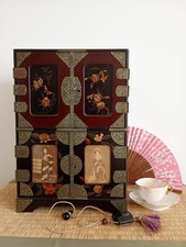 cabinet japonais en bois laqué à décor de paysage.coffret de rangement,Japon.