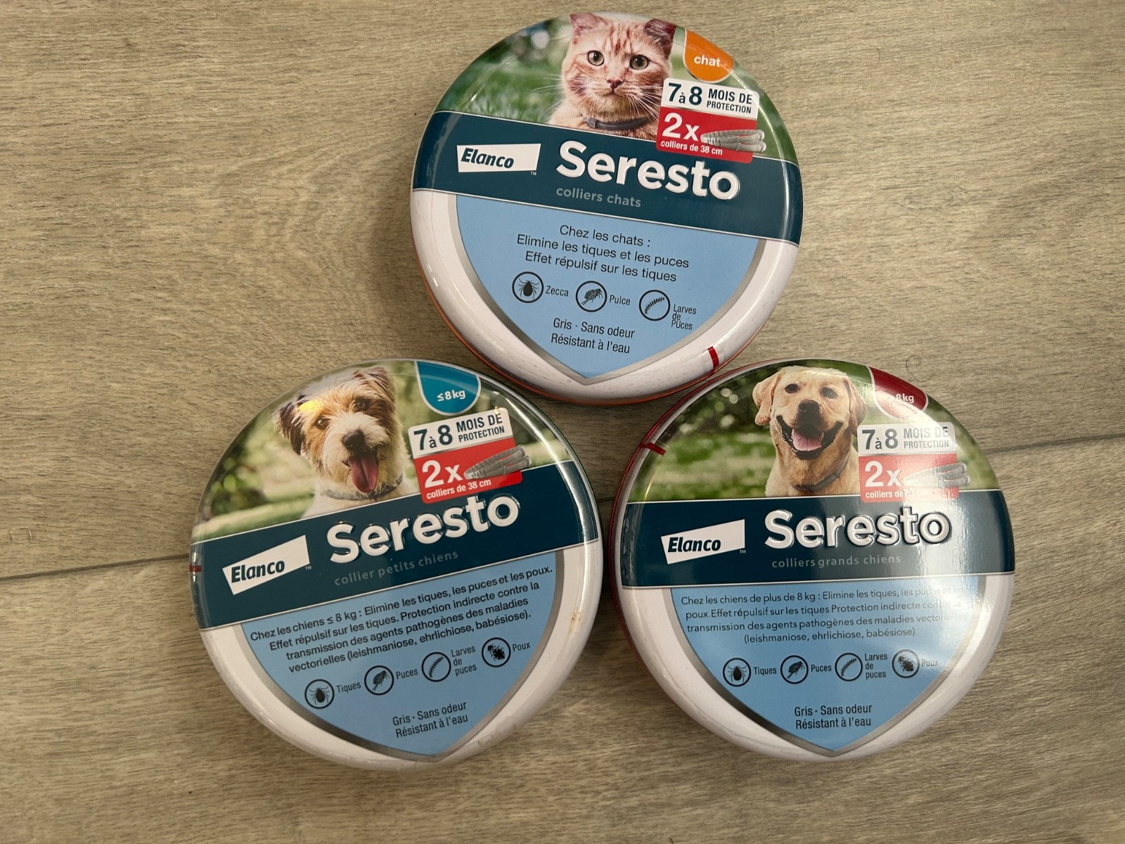 Lot de 2 Colliers SERESTO Chats chien. grand chien anti puces et anti tiques