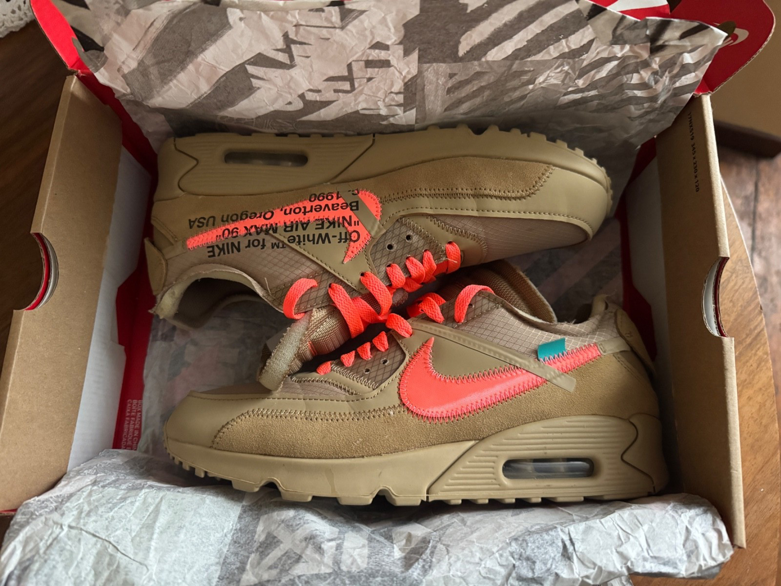 Size 9.5 - Nike Air Max 90 x OFF-WHITE Desert Ore 2019. Paire Air Max Off-White “Desert Ore” 2019, achetée en 2020 sur Klekt. Taille : 43 EU / 9.5 US. Boite état correct, voir les photos.
