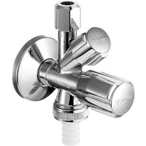 Schell Comfort vanne d'angle combinée 035510699 Numéro d'article 035510699 chromé surface0 avec poignée confort et dessus de chambre à graisse Raccordement de l'appareil avec clapet anti-retour Raccord à compression à cône de traction Schell avec compensation de longueur arbre de poussée long et rosace de poussée 54mm Raccord à vis pour tuyau