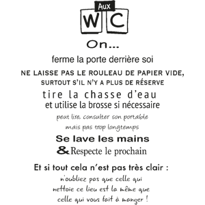 Des stickers muraux citations pour la déco ! Avec les stickers citation et ce Sticker citation toilettes règles des wc, vous pourrez enfin décorer l'intérieur de votre maison à votre guise avec leur aide ! Les stickers muraux citation, c'est la richesse des mots pour une décoration tendance !! Où c