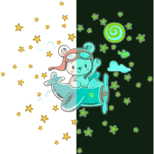 Des stickers enfants phosphorescents pour votre déco ! Avec les stickers muraux enfants phosphorescents et ce Stickers phosphorescents ourson pilote + 50 étoiles, vous vous approprierez enfin votre intérieur ! Dimensions des stickers enfants: Ce sticker phosphorescent se compose de 1 sticker phosph