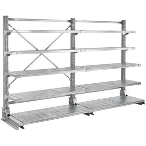 Rayonnage Cantilever galvanisé, léger, avec tablettes. Simple Face. Montants galvanisés. Tablettes réglables tous les 33mm. Dimensions : Hors tout : L.3240 x P.725x H.1990 mm Composition : - 3 montants hauteur 1990 mm + base 600 mm - 4 traverses longueur 1500 mm - 2 tablettes 1500*600 - 4 tablettes 1500*500 - 4 tablettes 1500*320 Charge maxi : 135 kg UR pa