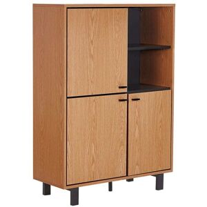 Cette commode haute et très élégante s'intégrera parfaitement à un salon au design moderne, industriel ou scandinave. Fabriquée à partir de matières résistantes et durables, elle s'appuie sur des pieds noirs en métal. Conçu pour offrir un maximum d'espace de rangement, ce joli buffet se compose de 3 grands compartiments à portes et d'un compartiment ouvert doté d'une étagère pratique. La couleur de bois de chêne et l'aspect naturel élégant font de cette commode un meuble de salon et de chambre à la fois décoratif, fonctionnel et polyvalent.