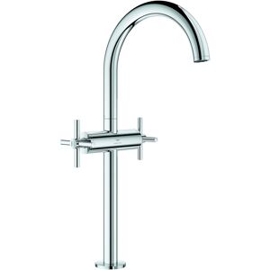 Grohe Atrio mitigeur lavabo à deux poignées 21145000 Dessus en céramique 1/2" 90° Économie d'eau 5 Mousseur laminaire 7 l/min système d'assemblage rapide Sortie de tôle pivotante avec limiteur d'arrêt garniture de vidange à ouverture par pression0 1 1/4" tuyaux de raccordement flexibles avec béquilles un ensemble avec marquage "H" et "C" un set sans marquage chaud/froid inclus dans la livraison