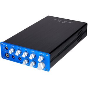Phil Jones Bass Amp Head BP-200, Tête d'ampli basse, Design à semi-conducteurs, Puissance: 200 Watt sous 4 Ohm, 120 Watt sous 8 Ohm, Filtre Sub Sonic pour réduire les mouvements inutiles de la membrane du haut-parleur, Refroidissement silencieux sans ventilateur, Préamplificateur de classe A, Amplificateur de puissance de classe D, EQ 3 bandes avec Boost/Cut +/- 15 dB par bande, Contrôles: Input Level, Bass, Mid, Treble, Volume, Commutateur 3 positions Mute/Active/Passive, Commutateur Power, Commutateurs arrière: Pre/Post EQ, Ground/Lift, Entrée instrument sur Jack mono 6,3 mm, Entrée Aux sur mini Jack stéréo 3,5 mm, Sortie casque sur mini Jack stéréo 3,5 mm, Connexions arrière: sortie DI (XLR), sortie baffle (Neutrik Speakon 2 broches) et prise d'alimentation CEI, Tension d'entrée: 100 - 240 V AC, Boîtier en aluminium, Dimensions (L x P x H): 176 x 170 x 53 mm, Poids: 1,22 kg, Câble de connexion électrique avec prise européenne incl.