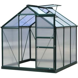 Description:Vous souhaitez garder votre pelle dehors et dans le sol toute l'année ? Optez pour la serre de jardin polycarbonate d'Outsunny. C'est une serre d'hiver que vous pouvez placer à l'extérieur sur votre patio ou dans votre jardin. Faites glisser la porte pour entrer facilement avec l'équipement. Ouvrez la ventilation et le climat est sous votre contrôle. Pluie, froid, vent, UV et animaux sauvages ne sont plus des soucis.caractéristique:● Châssis robuste et stable en aluminium anodisé; ● Protection idéale contre le froid, les insectes, oiseaux, etc. afin d'optimiser le rendement et la qualité de votre production; ● Tubes de renforcement afin d'optimiser la stabilité de la serre; ● Grande surface de 3,65 m² au sol pour la culture de vos fleurs, légumes, fruits, etc.; ● Panneaux double paroi en polycarbonate alvéolé (PC) isolant; ● Hauteur maximale de 201 cm idéale pour la ventilation de la serre et pour l'entretien de vos végétaux; ● Fondation incluse, idéale pour rigidifier l'ensemble et optimiser votre installation;Spécification:● Couleurs principales : vert foncé, transparent; ● Matériaux principaux : polycarbonate (plaques) et aluminium (châssis); ● Dim. totales : 190L x 192l x 201H cm; ● Dim. porte coulissante : 60l x 161,5H cm; ● Dim. lucarne : 60,2L x 60l cm; ● Épaisseur plaques : 4 mm; ● Surface couverte : 3,65 m²; ● Capacité max. de résistance au vent : 12 m/s; ● Charge max. recommandée : 40 kg/m²; ● Remarque : Nous recommandons de la placer contre un mur et à l'abri du vent; ● Réf. : 845-058;contenu du colis:● 1 x Serre de Jardin Polycarbonate; ● 1 x Manuel;