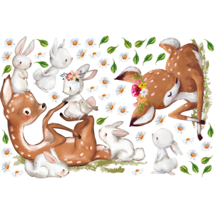 Des stickers animaux pour votre déco ! Avec les stickers muraux animaux multicolore et ce Stickers animaux biches et lapins, vous vous approprierez enfin votre intérieur ! Dimensions des stickers animaux : Ce sticker déco chambre enfant se compose de : 1 sticker biche, 1 sticker biche avec des lapi