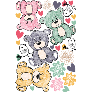 Des stickers animaux pour votre déco ! Avec les stickers muraux animaux multicolore et ce Stickers animaux oursons colorés, vous vous approprierez enfin votre intérieur ! Dimensions des stickers animaux : Ce sticker déco chambre enfant se compose de : 1 sticker ourson rose, 1 sticker ourson vert, 1