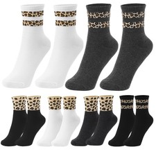 NONE 6 paires femmes imprimé léopard mi-long chaussettes à la mode impression confortable évacuant la sueur respirant décontracté mi-longue chaussettes