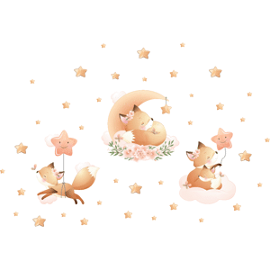 Des stickers animaux pour votre déco ! Avec les stickers muraux animaux multicolore et ce Stickers renards dans les étoiles, vous vous approprierez enfin votre intérieur ! Dimensions des stickers animaux : Ce sticker déco chambre enfant se compose de : 1 sticker renard sur la lune, 1 sticker renard