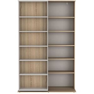 La bibliothèque DALENOR vous offre un large choix pour mettre en valeur vos livres ou divers objets de décoration. Son design épuré blanc et bois naturel apporte une touche de modernité à votre intérieur et lui permet de s'intégrer facilement à votre décoration d'intérieur.Caractéristiques Couleur (nuance) : Blanc, Naturel clair Matière : Panneau de particule Porte battante Type de rangement : 15 niches Type de pose : A poser au sol Charge maximale supportée : 60 kg À monter soi-même : Charge maximale supportée par les niches : 20 kgDimensions Longueur : 120 cm Hauteur : 180 cm Profondeur : 30 cmLivraisonColisColis n°1 : Longueur 179 cm, Largeur 41 cm, Hauteur 17 cm, Poids 54 kg,