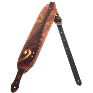 "Minotaur TN-B5 Heavy Duty with F-clef, Sangle de basse, Série Terra Nova, En cuir véritable, Rembourrage en mousse à mémoire de forme de 20 mm, Fond en cuir vegan noir, Longueur réglable de 105 à 130 cm, Largeur: 110 mm, Motif ""clé de Fa"" dorée, Couleur: Marron, Fabriquée en Grèce"