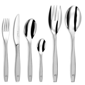 Ensemble de 50 couverts Laguiole de la gamme Jet Textil. Couverts en acier monobloc et finition brillante.Le Jet est une gamme Lou Laguiole® au design contemporain, souligné par un poinçon d'abeille stylisé. Le Jet se remet sur le devant de la scène avec le Jet Textil et son décor travaillé et inspiré de la "haute couture".Lou Laguiole® signe un design exclusif et traditionnel. Pour concevoir cette authentique gamme de couteaux Laguiole, nous mobilisons tout notre savoir-faire coutelier. Lou Laguiole® est une marque déposée et distribuée exclusivement par Amefa en France et dans le monde.Dimensions : Fourchette : 20.7 cm ; Cuillère table : 20.7 cm ; Cuillère café : 14 cm ; Couteau table : 22.5 cm