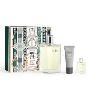 Hermès H24 - Coffret 100ml eau de toilette + 5ml eau de toilette (miniature) + 20ml Soin visage énergisantDescription : LA CRÉATION Créée par Christine Nagel, parfumeur d'Hermès, l'Eau de Toilette H24 est la première expression olfactive de l'homme contemporain selon Hermès. Un parfum vif et lumineux, né de l'hybridation audacieuse entre nature et technologie. LES NOTES OLFACTIVES La fraicheur aromatique et végétale de l'Eau de Toilette H24 repose sur la fusion d'une sauge sclarée enveloppante, d'un narcisse électrique, d'un bois de rose vivifiant et d'un sclarène métallique et chaud. L'OBJET Dessiné par Philippe Mouquet, le flacon exprime l'élan et l'énergie de l'homme contemporain. Son étui gris urbain orné d'un filet vert lime définit l'espace autant qu'il l'ouvre. L'ÉTHIQUE Le flacon aux lignes aérodynamiques, rechargeable, est fait de verre recyclé. Etui fabriqué à partir de pâte à papier ECF (Elemental Chlorine Free/sans chlore élémentaire ou gazeux), comportant au moins 40% de matières recyclées. LE DÉTAIL HERMÈS H24 c'est la clé d'un nouvel espace. H pour Hermès, Homme, Heures. 24 pour exprimer un rapport au temps et le lien à la maison, située au 24 rue du Faubourg Saint-Honoré. H24 est la première expression olfactive de l'homme contemporain selon Hermès. Un parfum vif, sensuel et lumineux cultivant l'hybridation audacieuse entre nature et technologie. Un objet rechargeable aux lignes aérodynamiques. Un étui en papier 100% recyclé et recyclable orné d'un filet vert lime qui définit autant qu'il ouvre l'espace. Notes Olfactives : Note de tête : NarcisseNote de coeur : Bois de roseNote de fond : Sauge Ingrédients:ALCOHOL • AQUA (WATER) • PARFUM (FRAGRANCE) • LIMONENE • BHT • ETHYLHEXYL METHOXYCINNAMATE • COUMARIN • HYDROXYCITRONELLAL • BENZYL SALICYLATE • LINALOOL • EVERNIA PRUNASTRI (OAKMOSS) EXTRACT • GERANIOL • ETHYLHEXYL SALICYLATE • BUTYL METHOXYDIBENZOYLMETHANE • CITRONELLOL • EUGENOL • CITRAL • FARNESOL. Cette liste d'ingrédients peut faire l'objet de modifications, veuillez consulter l'emballage du produit acheté.