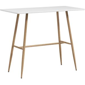 Description:Ce mange debout HOMCOM au design moderne prend moins de place, est assez haute pour se réunir et assez grande pour travailler debout. Si vous souhaitez vous asseoir, choisissez un ensemble complet comprenant quatre tabourets de bar assortis. Nos tables de bar sont idéales pour servir de table de buffet ou pour préparer des boissons pour les invités, ainsi que pour prendre le café du matin ou le dîner en famille.caractéristique:● Design moderne avec pieds en acier plaqué effet bois et plateau de table peint; ● Le grand plateau de table offre suffisamment d'espace pour 4 personnes; ● Les pieds en acier peint par poudrage et les épaisses barres de soutien sous le plateau offrent un soutien et une stabilité fiables; ● La longue barre d'appui située sous le bureau offre un endroit confortable pour poser les pieds; ● Les pieds réglables permettent de stabiliser la table sur les surfaces irrégulières et de protéger votre sol; ● Peut servir de table de bar, de console d'appoint dans l'entrée, de buffet de service dans la cuisine ou de meuble de rangement dans le bar et la salle à manger; ● Assemblage requis;Spécification:● Couleurs : blanc, marron; ● Matériaux : MDF, acier; ● Dim. totales : 120L x 60l x 98H cm; ● Hauteur repose-pieds au sol : 37 cm; ● Hauteur recommandée : 61-69 cm pour les tabourets de bar (non inclus); ● Convient pour un espace minimum : 2,8L x 2,2l ㎡; ● Charge max. recommandée : 30 kg; ● Réf. : 83A-034V00WT;contenu du colis:● 1 x Table de Bar; ● 1 x Manuel;