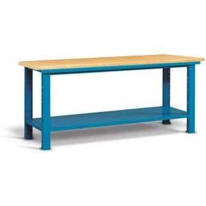 Etabli métallique Fortis avec plateau bois en multipli hêtre épaisseur 30 mm Structure fabriquée en tôle d’acier de première qualité Plateau supportant une charge de 1000 kg (C.U.R) Avec étagère métallique inférieure de dépose renforcée (charge maxi de 250 kg) Coloris Bleu Ral 5012 Dimensions : > Hors Tout : L. 2000 x P. 750 x H. 880 mm >Poids 68 kg. Domaines d'utilisat