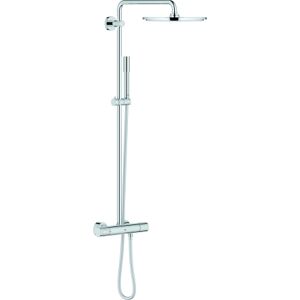 Grohe Rainshower 310 système de douche avec douchette Numéro d'article: 27966000 chrome pour montage mural adapté pour Chauffe-eau partir de 18 kW / h Débit minimum 7 l / min composé de: bras de douche pivotant horizontalement de 450 mm Thermostat exposé avec fonction aquadimmer Douche de tête Rainshower ® Cosmopolitan 310 (27477000) Match4 main Sena (28034000) Douche de tête avec chaleur de douche 2000 type de pulvérisation avec rotule, angle de rotation ± 15 ° Le bras de douche peut pivoter horizontalement Projection du bras de douche: 450 mm Diamètre de la douche de tête: 310 mm avec Grohe DreamSpray® pour un jet parfait avec InnerWater Guide pour une surface chromée protégée grâce à une alimentation en eau interne séparée avec SpeedClean système anti-calcaire avec Grohe StarLight ® pour une Grohe durable pas de gouttes grâce à DropStop Douchette avec flexible de douche Silverflex et toboggan 2000 type de pulvérisation Longueur de la douchette: 215 mm avec Grohe DreamSpray® pour un jet parfait avec InnerWater Guide pour une surface chromée protégée grâce à une alimentation en eau interne séparée avec SpeedClean système anti-calcaire avec Grohe StarLight ® pour une Grohe durable réglable en hauteur au moyen d'un élément coulissant Longueur du tuyau de douche: 1750 mm Tuyau de douche résistant à la torsion, flexible, facile à nettoyer et avec protection anti-torsion TwistFree Thermostat: Exposé avec Aquadimmer pour un changement en douceur entre la douche de tête et la douchette avec contrôle du volume avec Grohe compacte Grohe TurboStat® pour une température d'eau constante même en cas de pression d'eau fluctuante avec verrouillage de sécurité SafeStop à 38 ° C avec SafeStop Plus pour une limitation à une température maximale de 43 ° C avec thermocouple d'expansion avec boîtier de sécurité Grohe CoolTouch® Grohe éviter les brûlures avec Grohe StarLight ® pour une Grohe durable