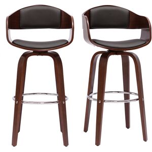 Créez une ambiance vintage dans votre cuisine avec ces tabourets de bar WALFORD.Avec une hauteur d'assise de 65 cm, ces tabourets de bar seront parfaits pour accompagner votre îlot central d'une hauteur maximum de 95 cm. Avec leur dossier enveloppant, leur assise légèrement rembourrée et leur repose pieds, votre confort est assuré. Vous profiterez au maximum de vos moments conviviaux. Conçu en panneaux de fibres de bois avec un placage noyer et en hévéa, ces tabourets hauts possèdent également une assise en polyuréthane noire. Vendus par lot de 2. À monter soi-même.